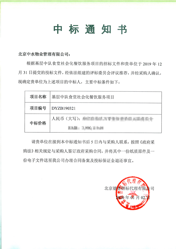 监所管理总队所属食堂餐饮管理服务项目成功中标