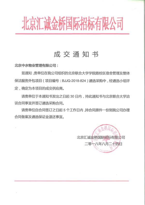 北京联合大学学院路校区宿舍管理及整体保洁服务外包项目成功中标