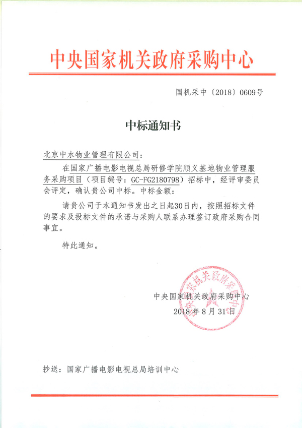 国家广播电影电视总局研修学院顺义基地物业管理服务项目成功中标