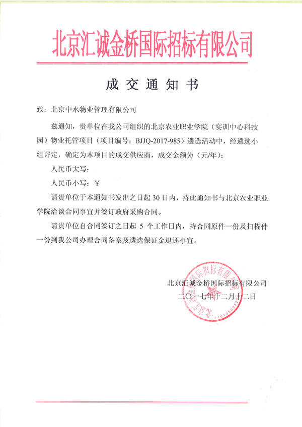 北京农业职业学院(实训中心科技园)物业托管项目成功中标